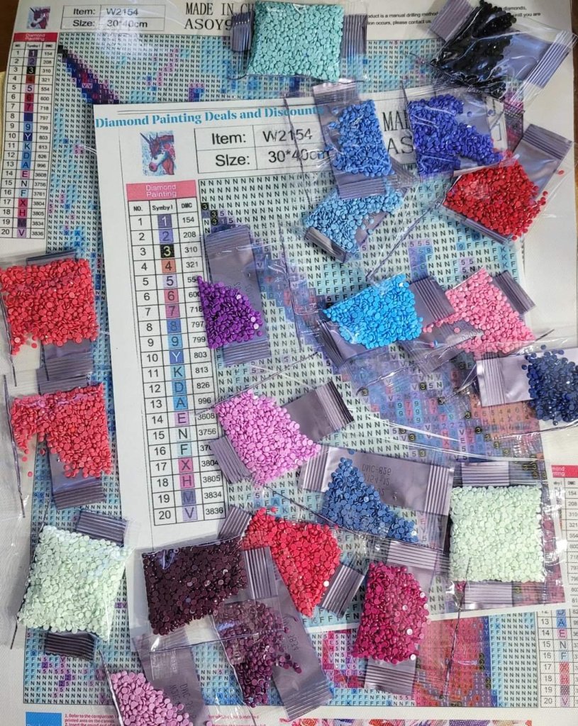 Since I started diamond painting I have kitted up each painting a little differently. There is definitely not any right or wrong way to do it. Hopefully this tutorial will give you some inspiration and insight. You can adapt what I’m showing you to whatever supplies you have on hand, but I’ll include links in case you want to shop for or find out more details about what I’m using.