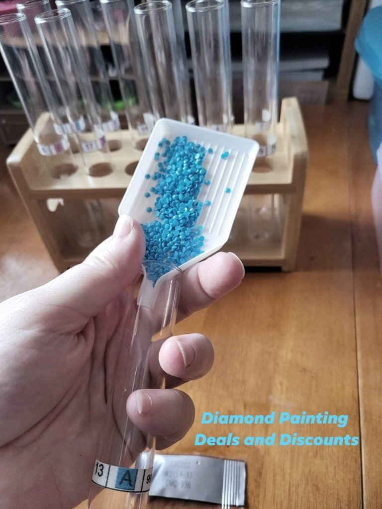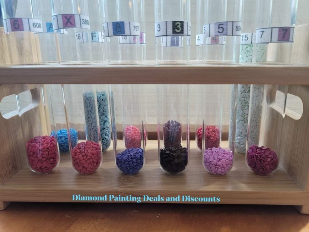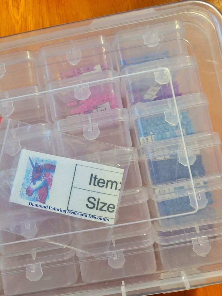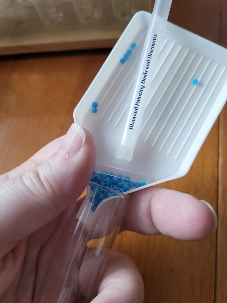 I seperate which drills I’ll put in my test tubes, since that holds 12 colors and then I put the rest in my Harbor Freight container.